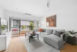 Open plan living and dining connecting to balcony